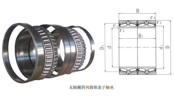 为了满足客户的不同需求,YHJT/YHE研制生产了英制无隔圈四列圆锥滚子轴承。这种 轴承除了具备普通的四列圆锥滚子轴承的特性外,其中央不设内圈隔圈和外圈隔圈,这样 就最大限度减少组件,便于操作。